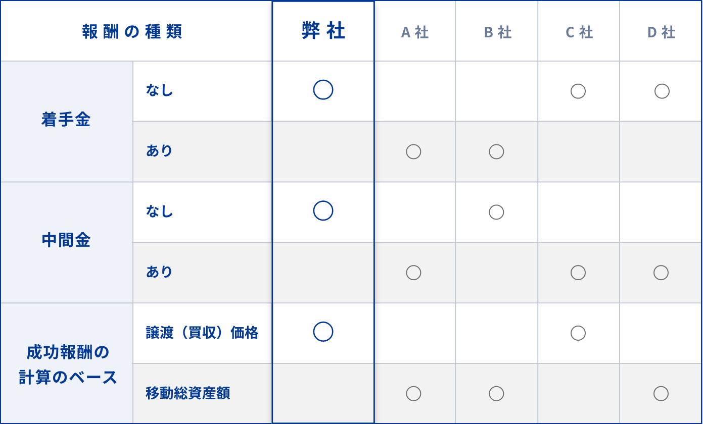 弊社は、着手金・中間金(※)はいただかず、成功報酬のみでM&Aを支援しており、実績豊富なM&A仲介会社のなかでは、最もリーズナブルな報酬体系だと自負しています。