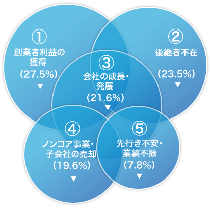 当面はまだ大丈夫としても、不透明な経済環境の中、将来にわたって独力で会社を運営していくことに不安を感じ、大手企業の傘下に入った方が良いと考え売却を決断するケースです。